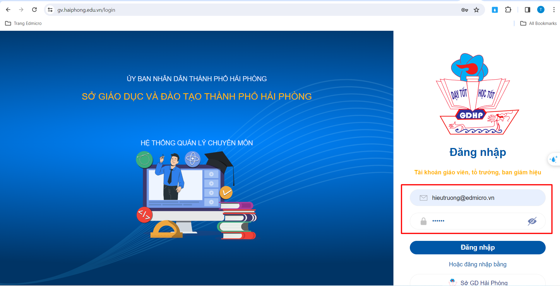 – Thầy/Cô sử dụng trình duyệt Google Chrome và truy cập vào website: “Haiphong.edu.vn“