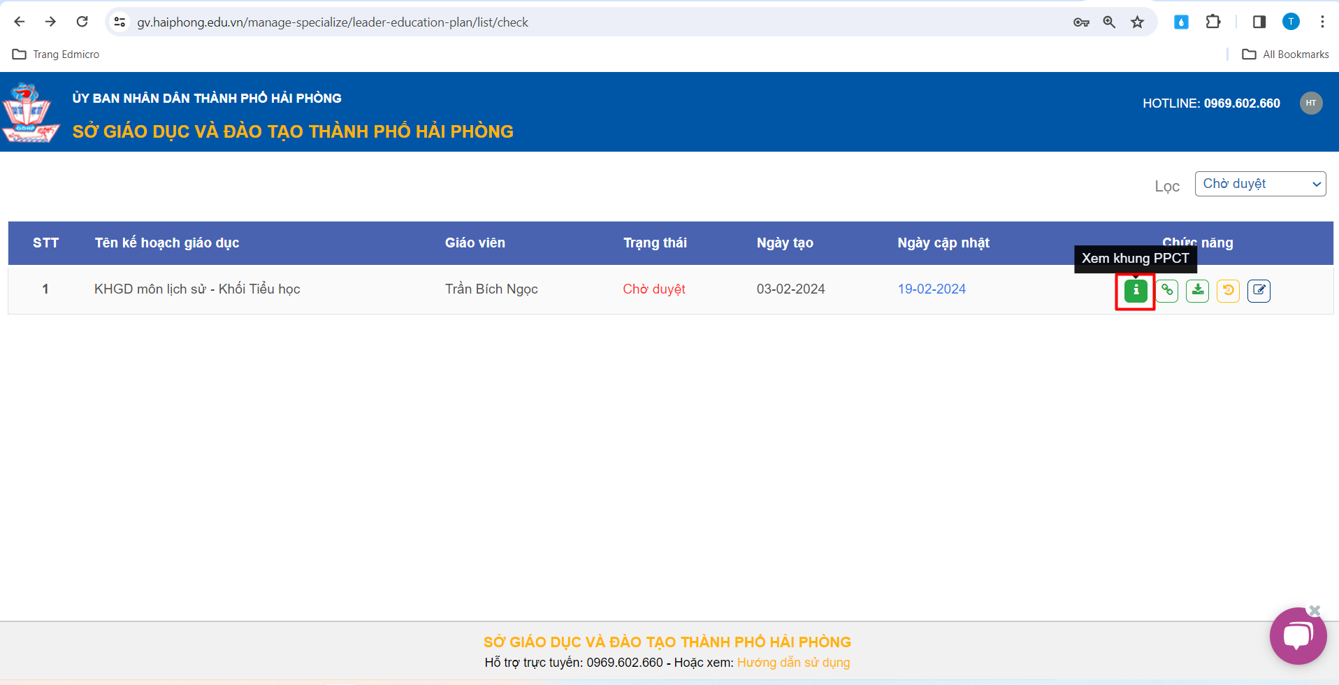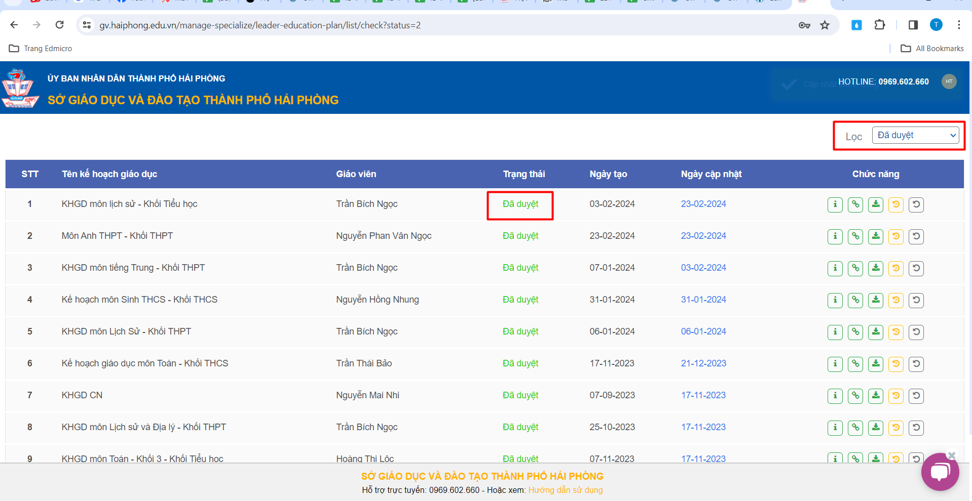 – Kế hoạch giáo dục của Tổ bộ môn sẽ được chuyển sang trạng thái “Đã duyệt”