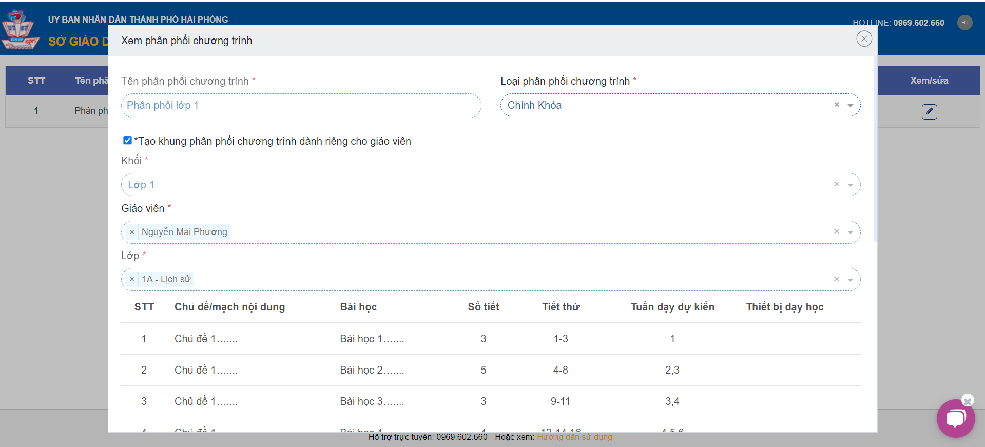 – Thầy/Cô chọn biểu tượng chữ “i” để xem khung phân phối chương trình: