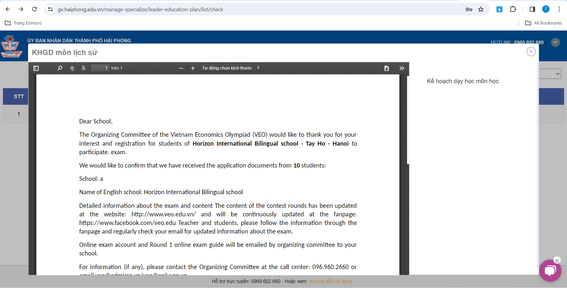 – Thầy/Cô chọn tính năng “Xem tệp Kế hoạch giáo dục đính kèm”
