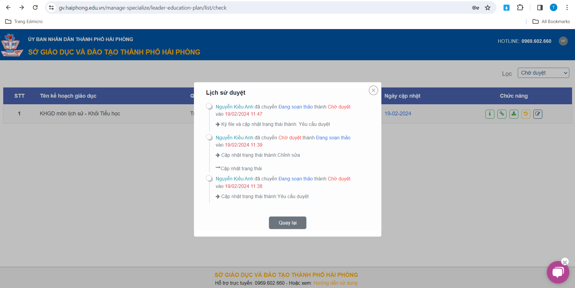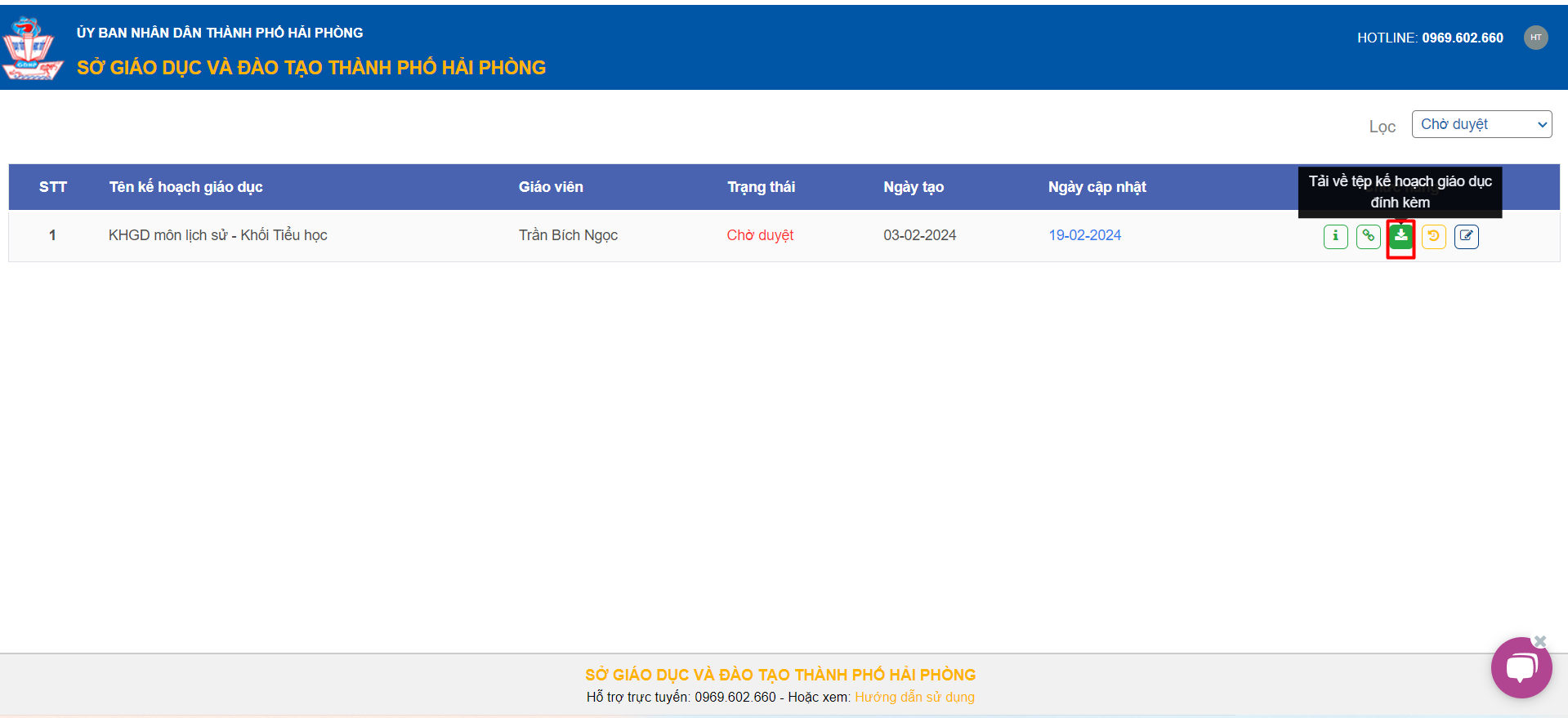– Hệ thống sẽ hiển thị đầy đủ các trạng thái của Kế hoạch giáo dục:
