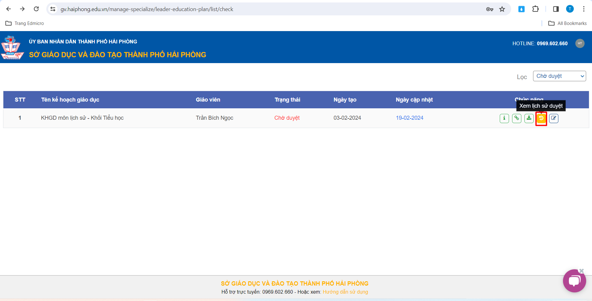 – Để xem lại lịch sử duyệt, Thầy/Cô chọn biểu tượng xem lịch sử duyệt: