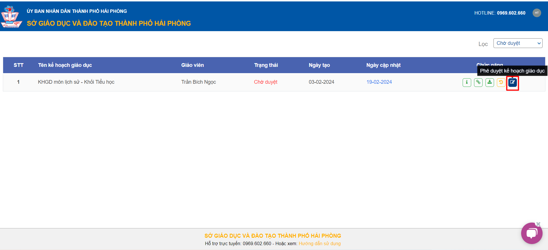 – Thầy/Cô chọn tính năng “Phê duyệt kế hoạch giáo dục”