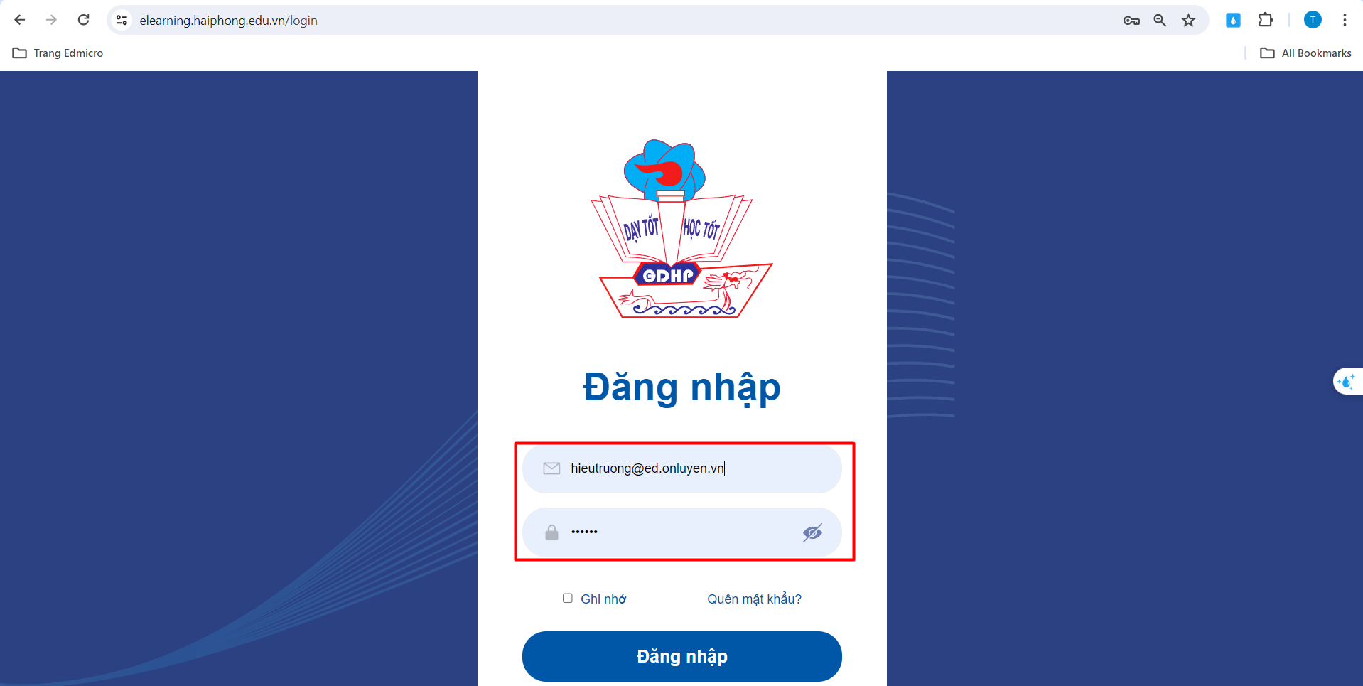 Thầy/cô đăng nhập tài khoản có quyền hiệu trưởng/hiệu phó được cấp, chọn “Đăng nhập”