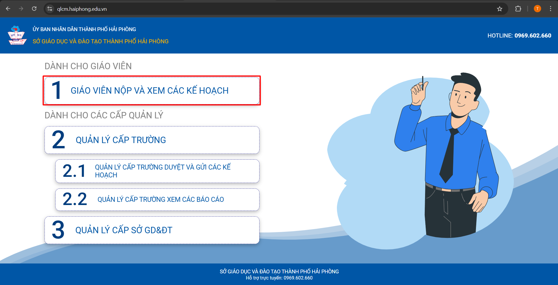 – Thầy/Cô sử dụng trình duyệt Google Chrome truy cập vào website “haiphong.edu.vn“.