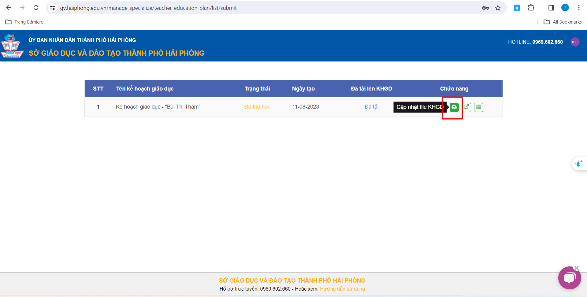 Bước 2: Tải lên Kế hoạch giáo dục
