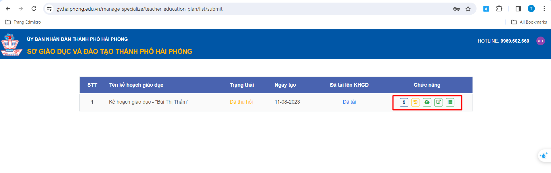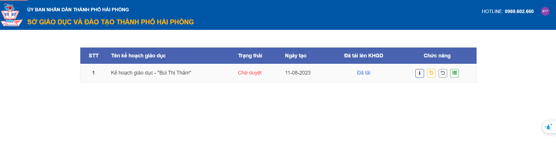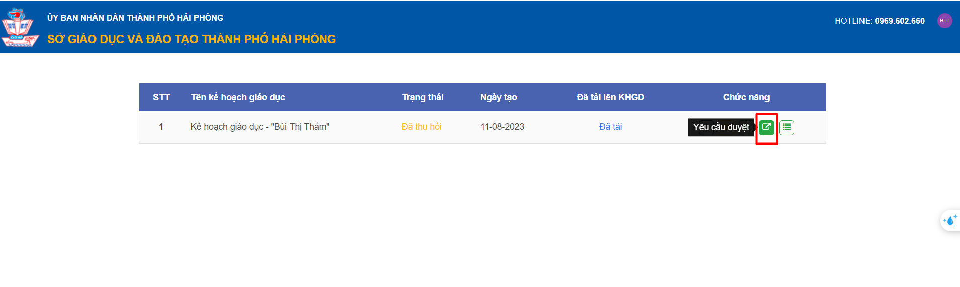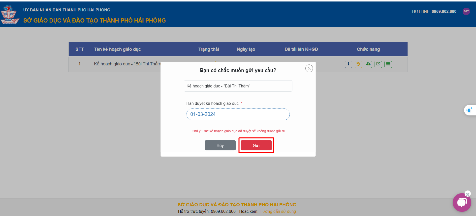 – Hệ thống sẽ thông báo Kế hoạch giáo dục đã được chuyển sang trạng thái “Chờ duyệt”