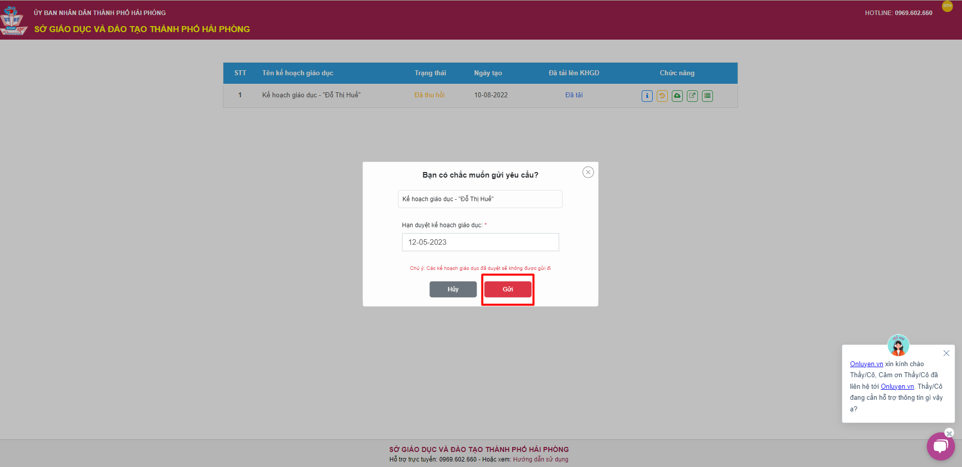 Bước 3: Yêu cầu duyệt lại Kế hoạch giáo dục của Giáo viên