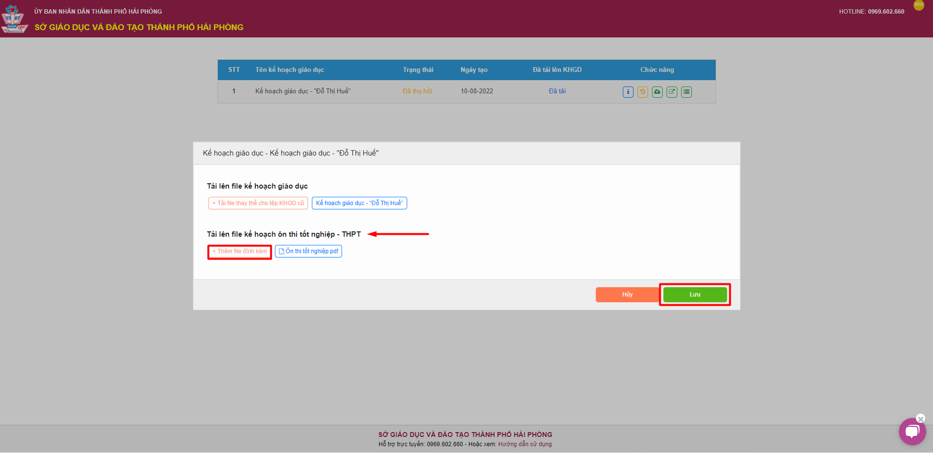 Bước 1: Thầy/Cô xin thu hồi kế hoạch giáo dục của Giáo viên