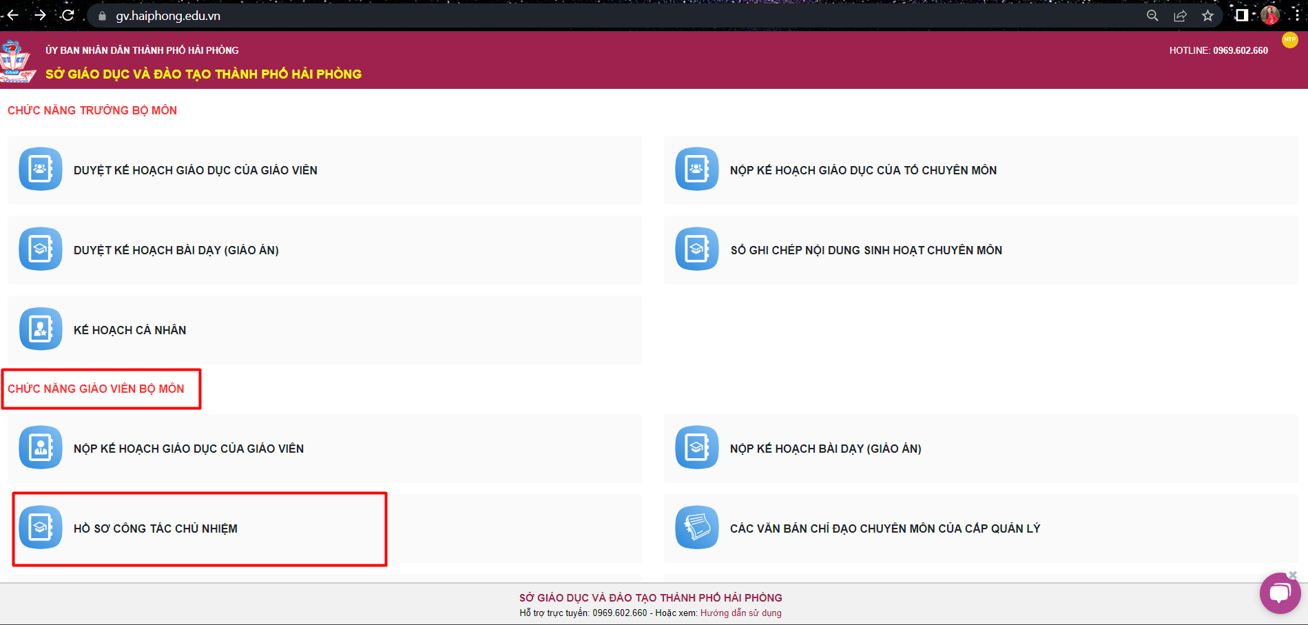 -Tại mục “Chức năng giáo viên bộ môn” chọn ” Hồ sơ công tác chủ nhiệm“