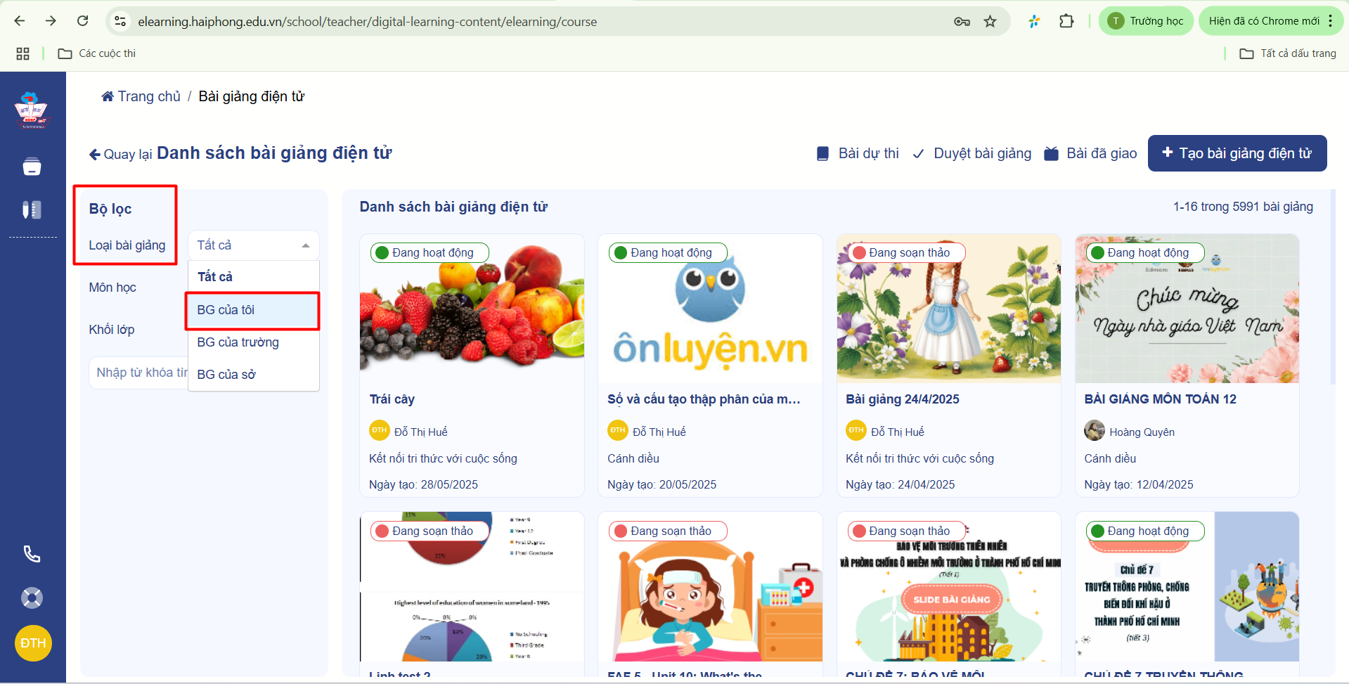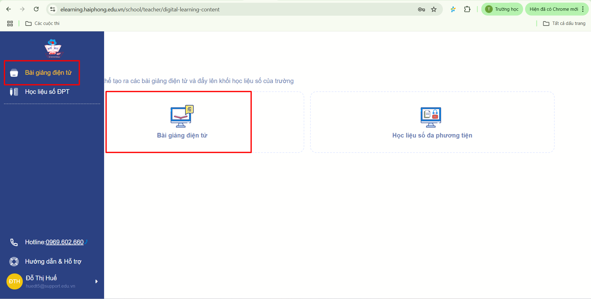 Bước 1: Giáo viên đăng nhập tại trang haiphong.edu.vn chọn “Quản lý giáo dục” chọn “Elearning”