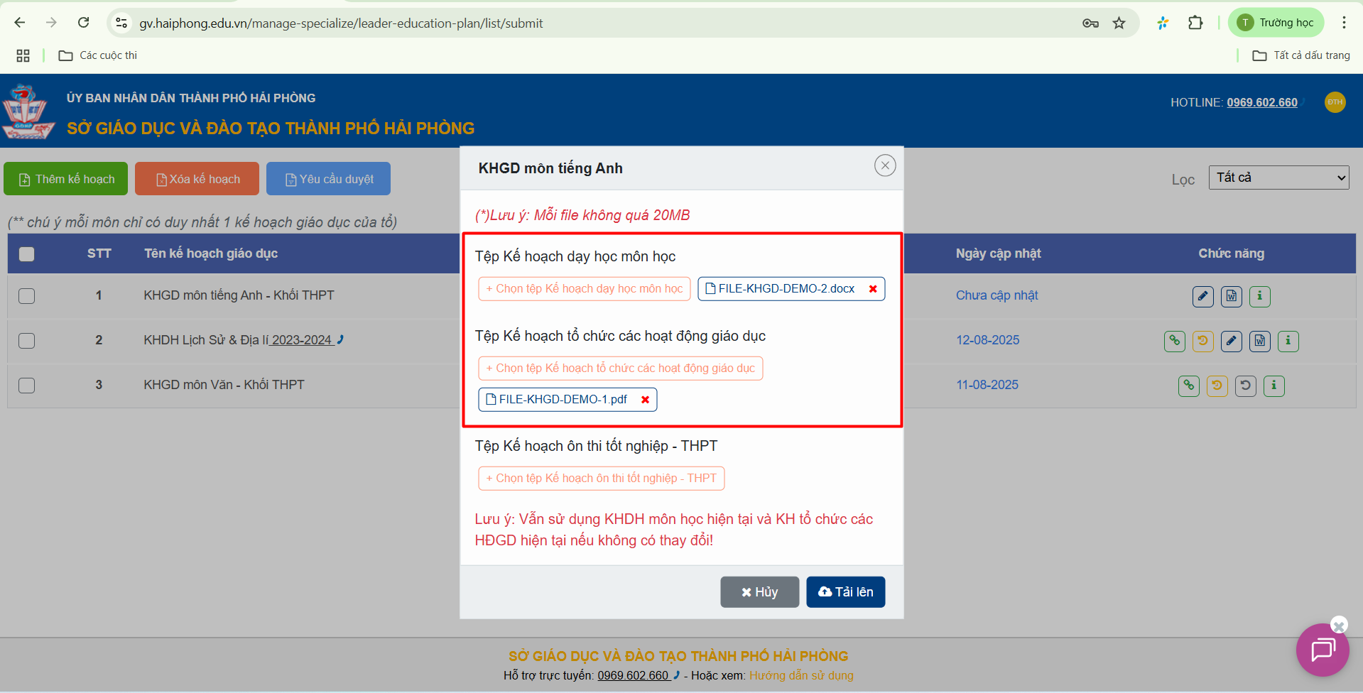 – Thầy/cô chọn thêm tệp “Kế hoạch dạy học môn học”, ” Kế hoạch tổ chức các hoạt động giáo