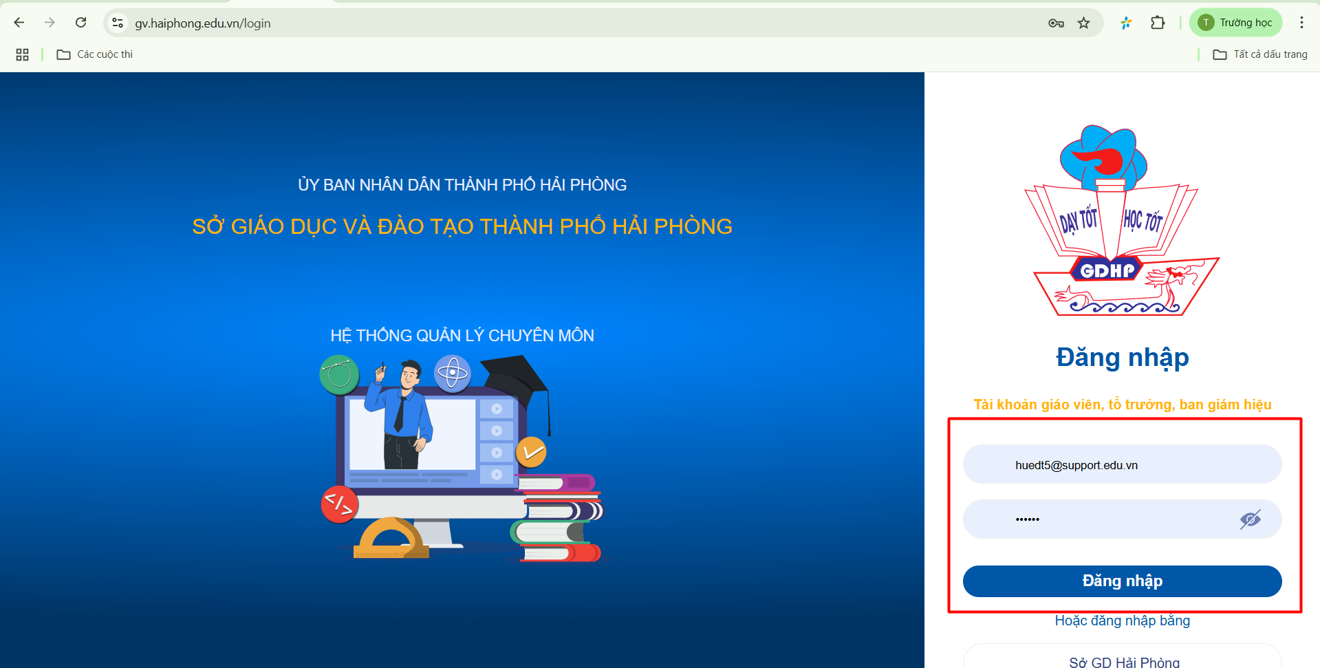 – Thầy/Cô sử dụng trình duyệt Google Chrome truy cập vào website “Haiphong.edu.vn“.