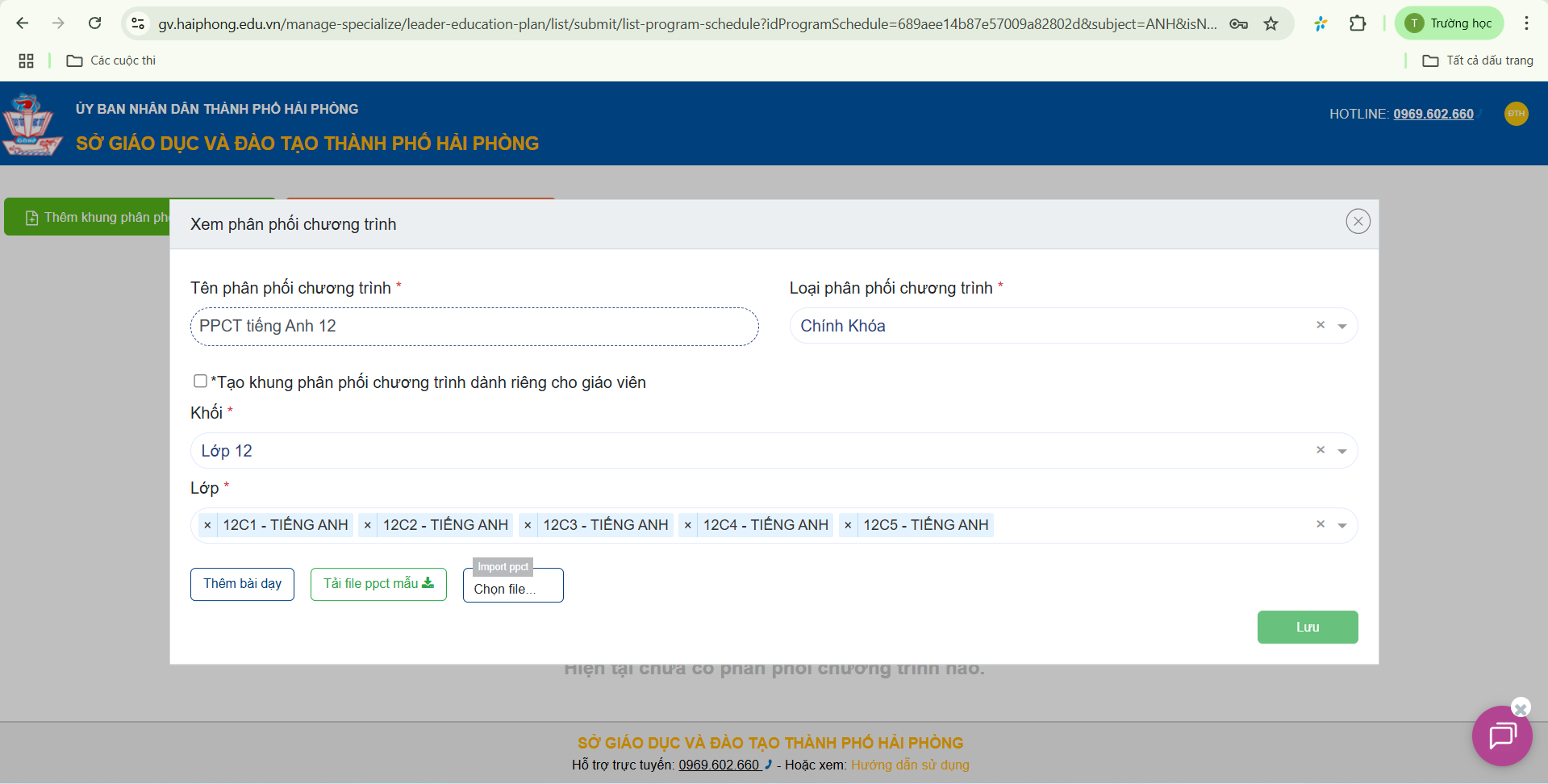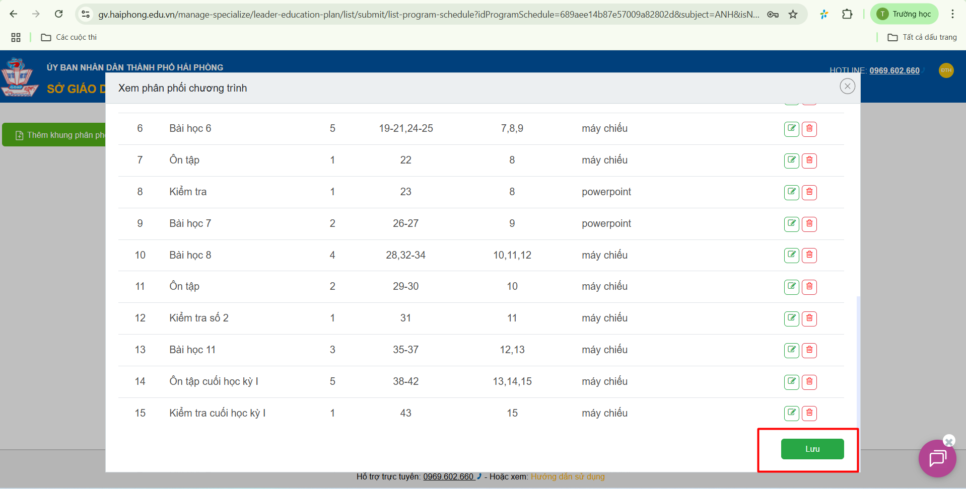 – Thầy/Cô chọn “Lưu” để lưu PPCT vừa tạo