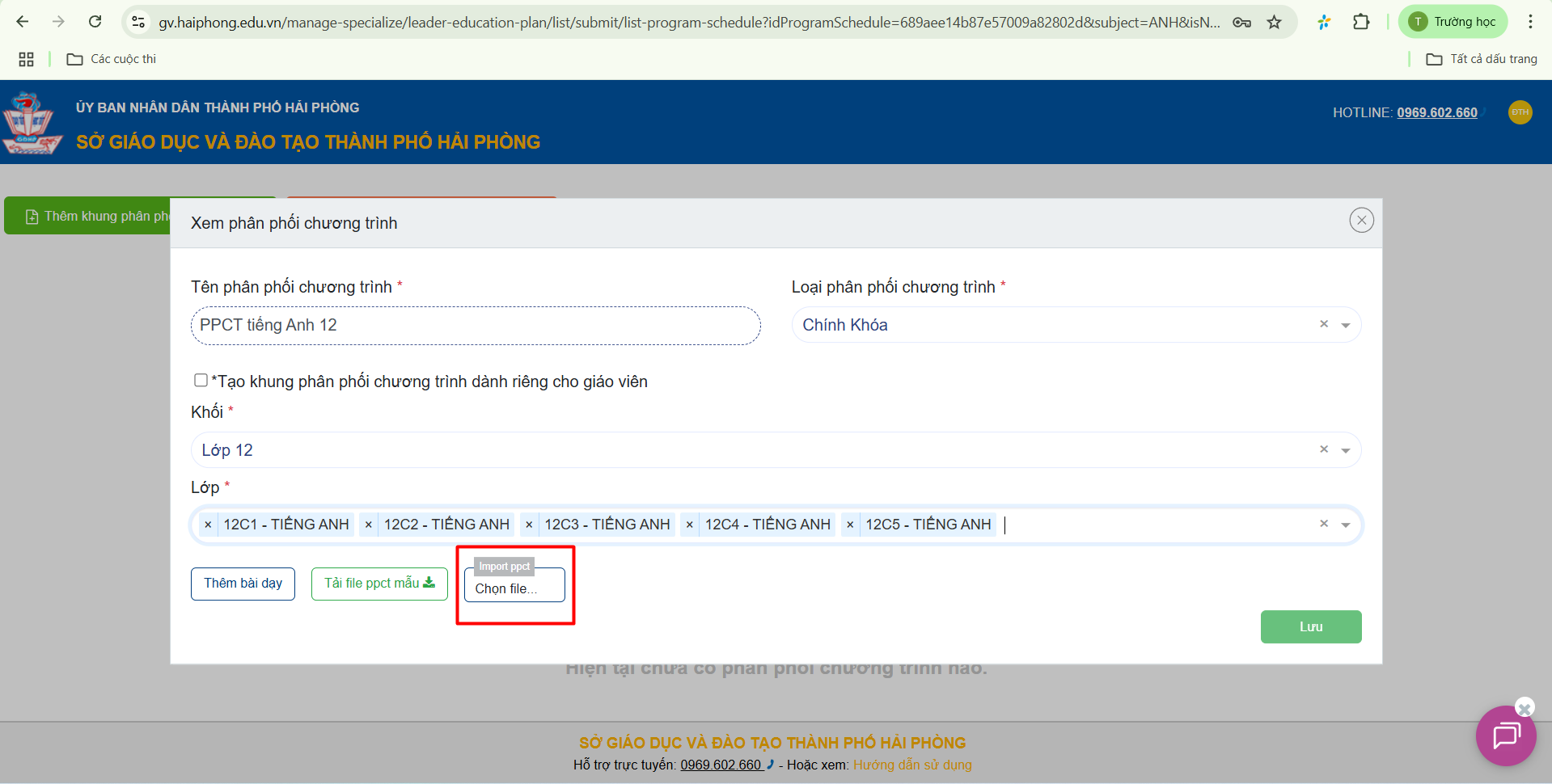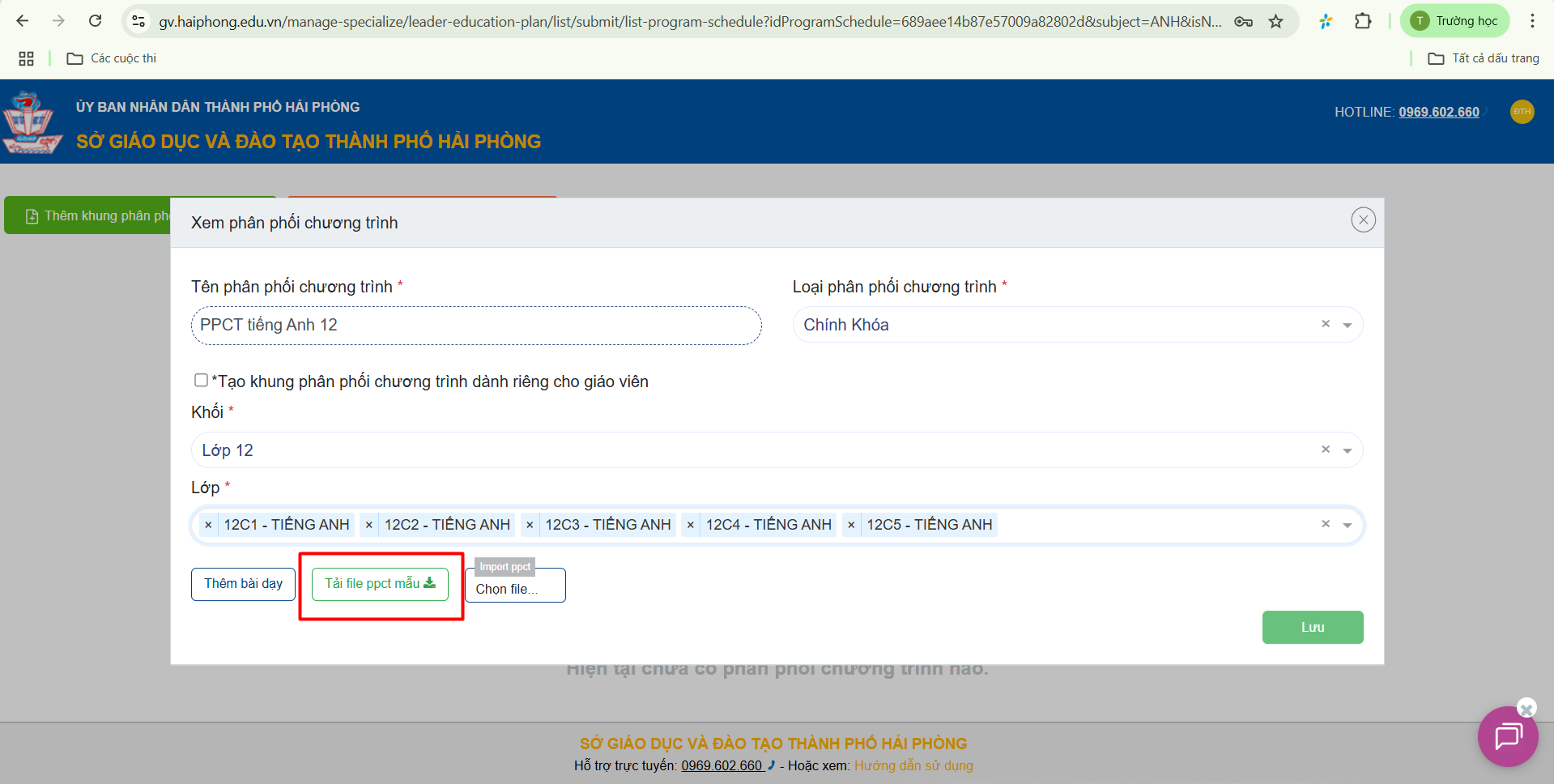 – Thầy/ Cô chọn “Tải file PPCT mẫu” để tải PPCT cho giáo viên về máy .