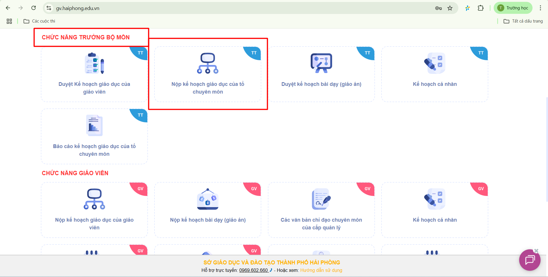 – Tại chức năng trưởng bộ môn Thầy/ Cô chọn “Nộp kế hoạch giáo dục của tổ chuyên môn”.