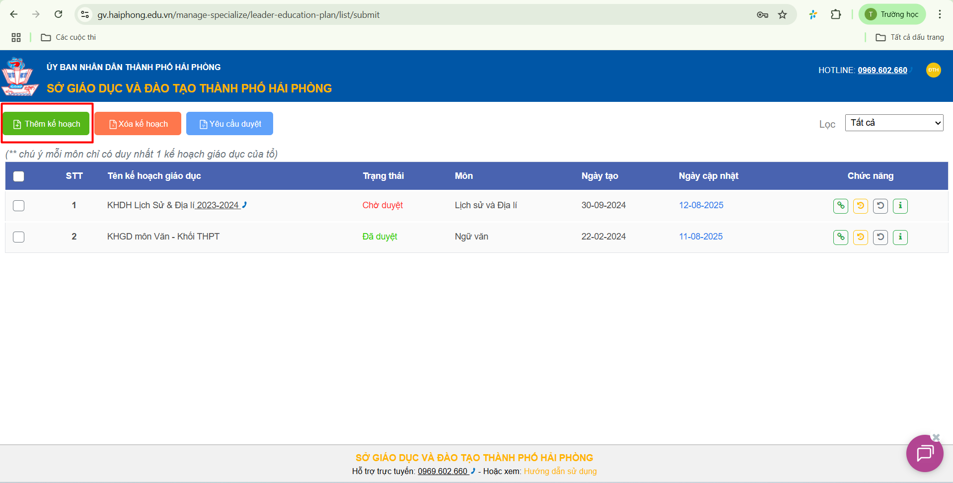 Để trưởng bộ môn nộp kế hoạch giáo dục và Phân phối chương trình của Tổ chuyên môn, Thầy/cô thao tác theo hướng dẫn của video sau: