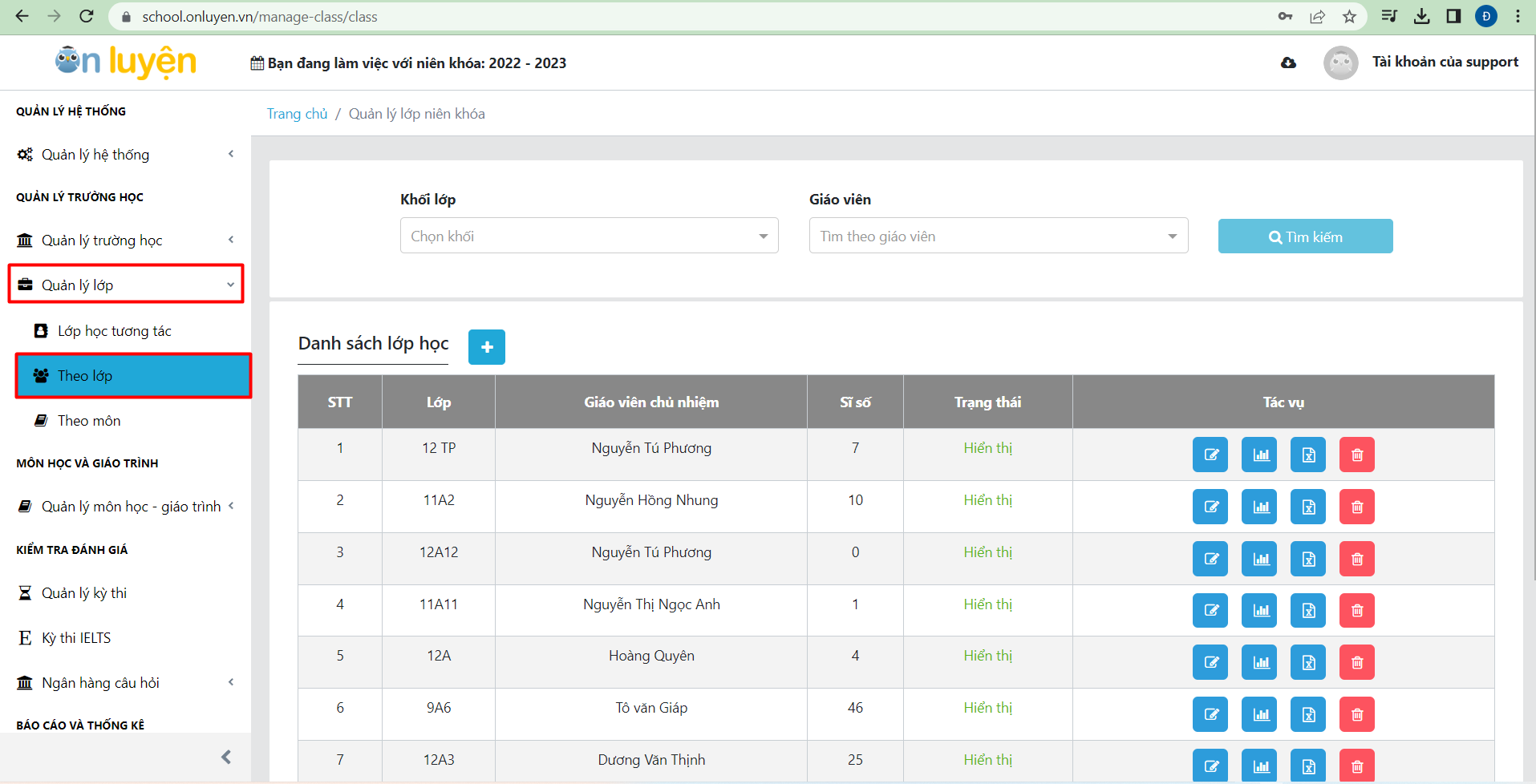 2. Tại mục “Quản lý Trường học”, thầy cô chọn “Quản lý lớp” và “Theo lớp”.