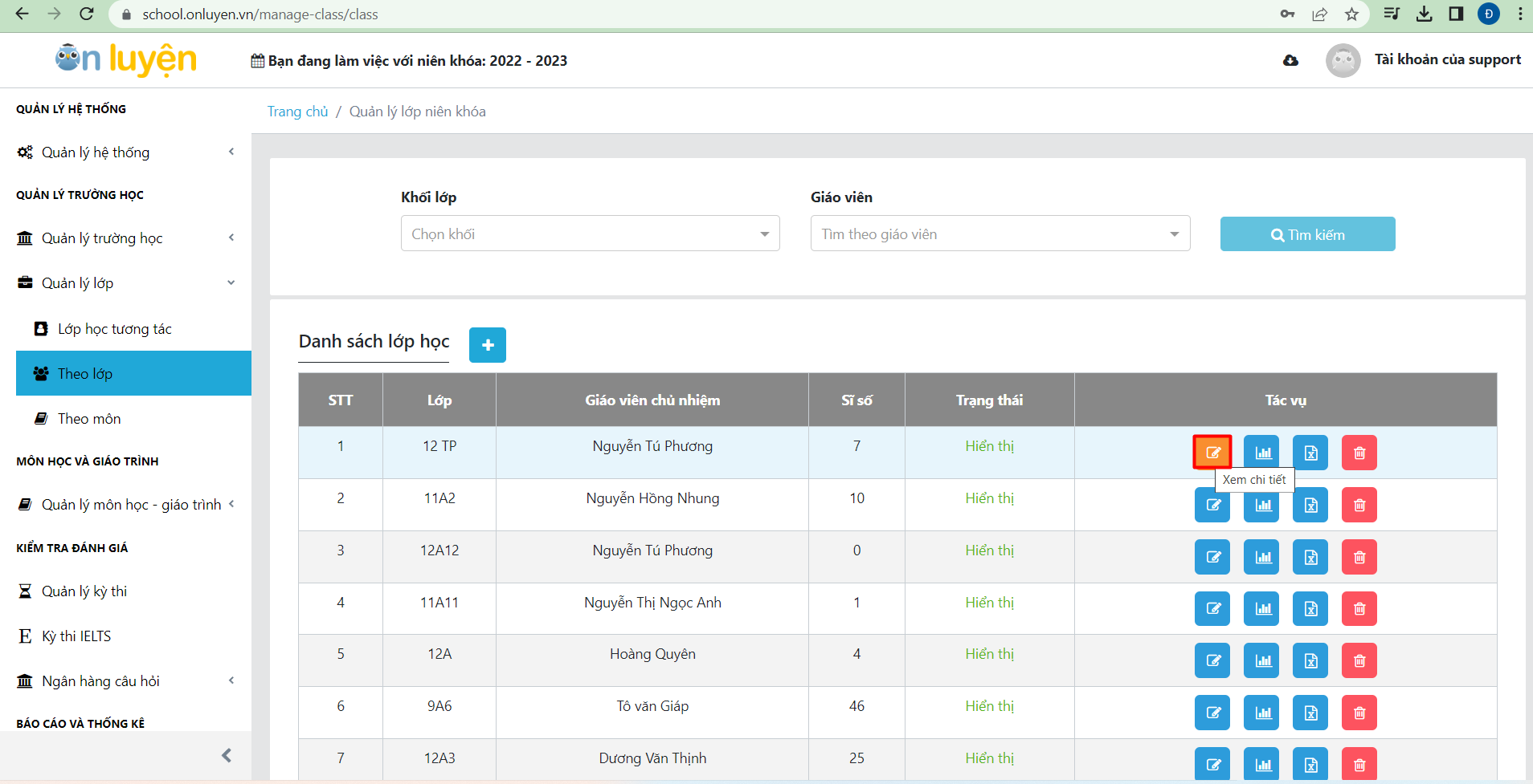 3. Tại các lớp thay đổi phân công chuyên môn, thầy cô chọn mục “Xem chi tiết”