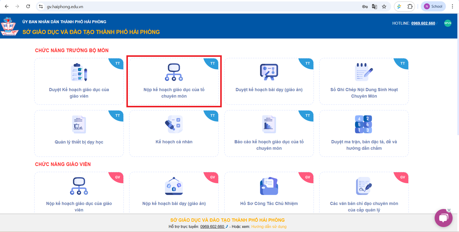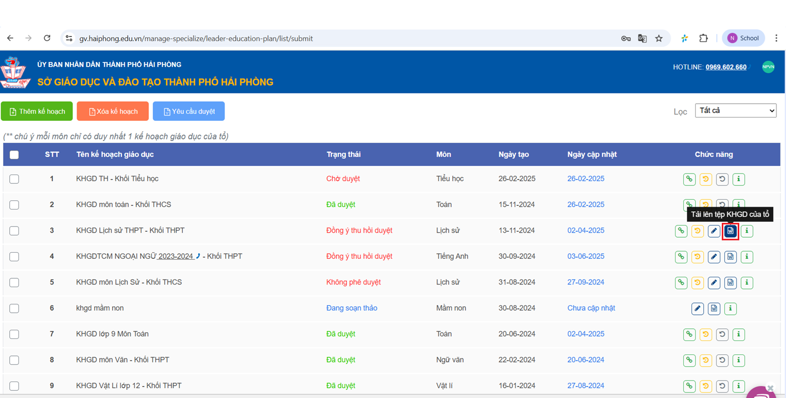 Thầy cô trở lại mục “Nộp kế hoạch giáo dục của Tổ chuyên môn”.