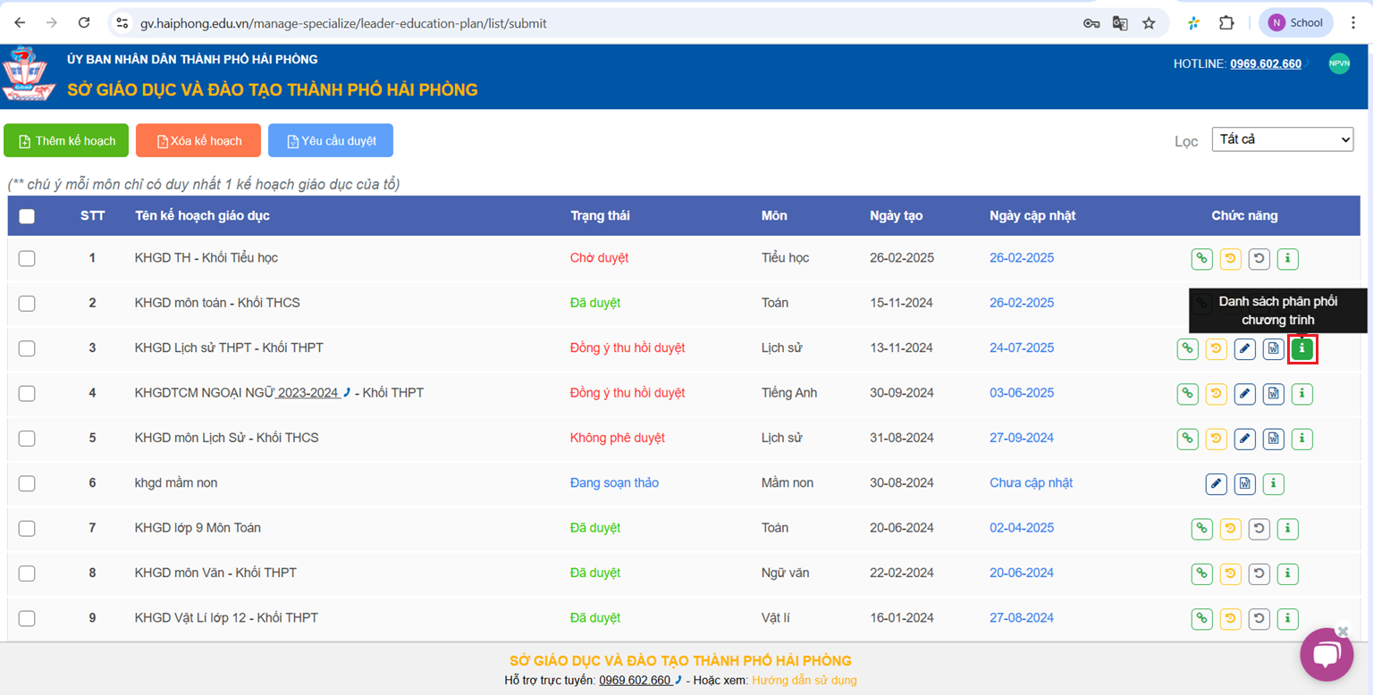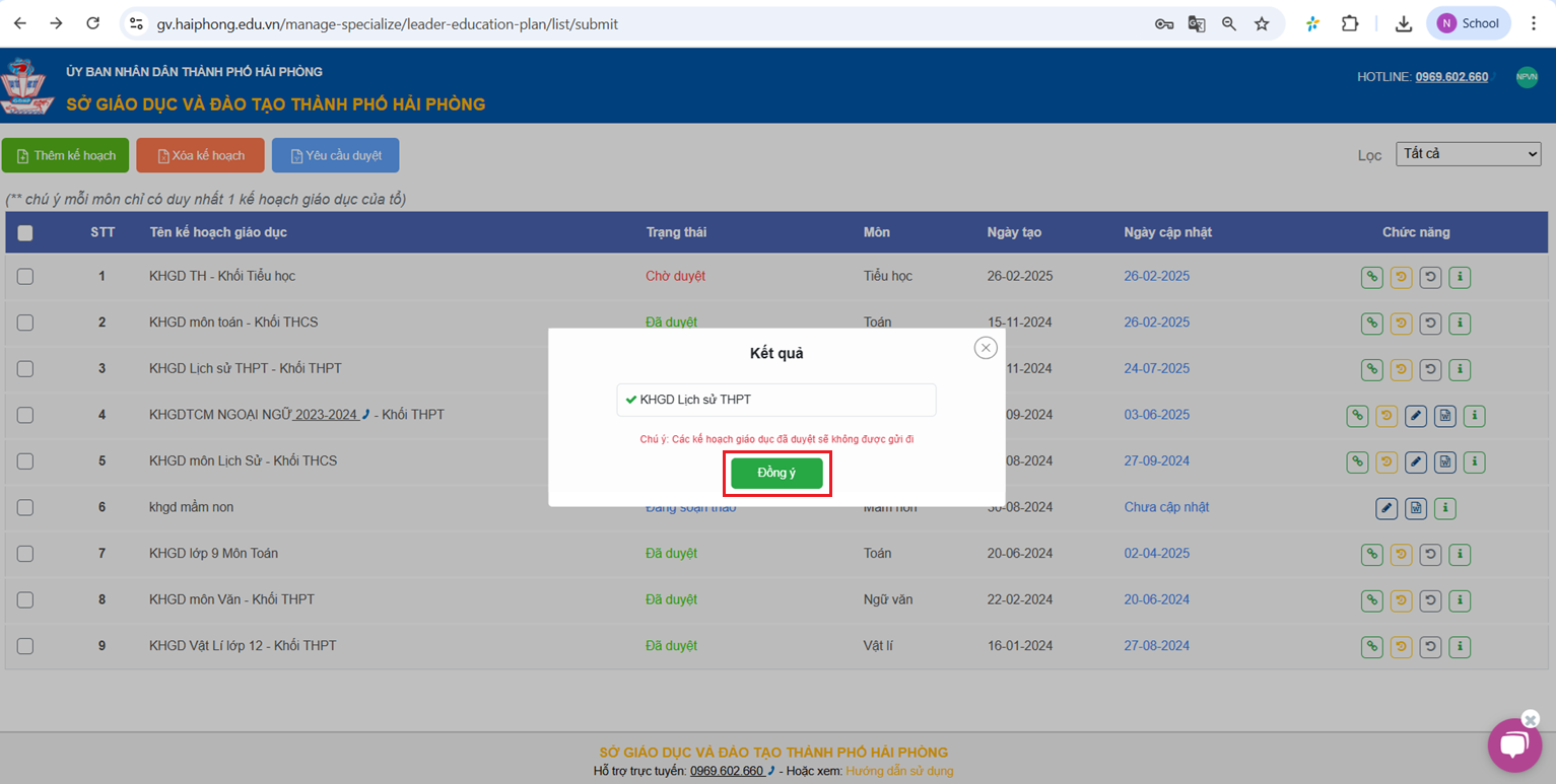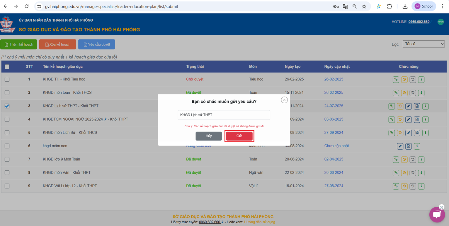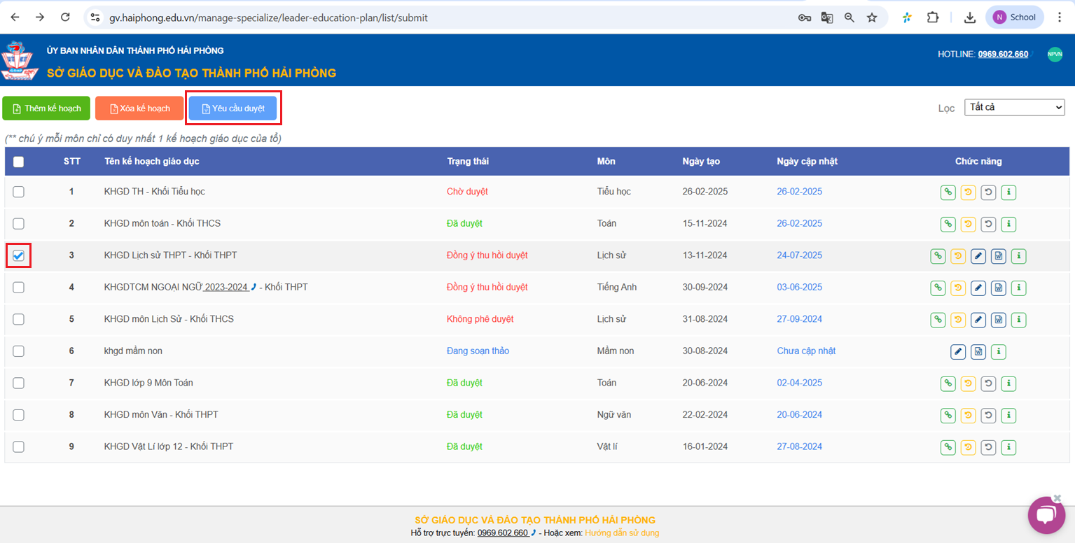 Bước 3: Yêu cầu duyệt lại Kế hoạch giáo dục của Tổ chuyên môn