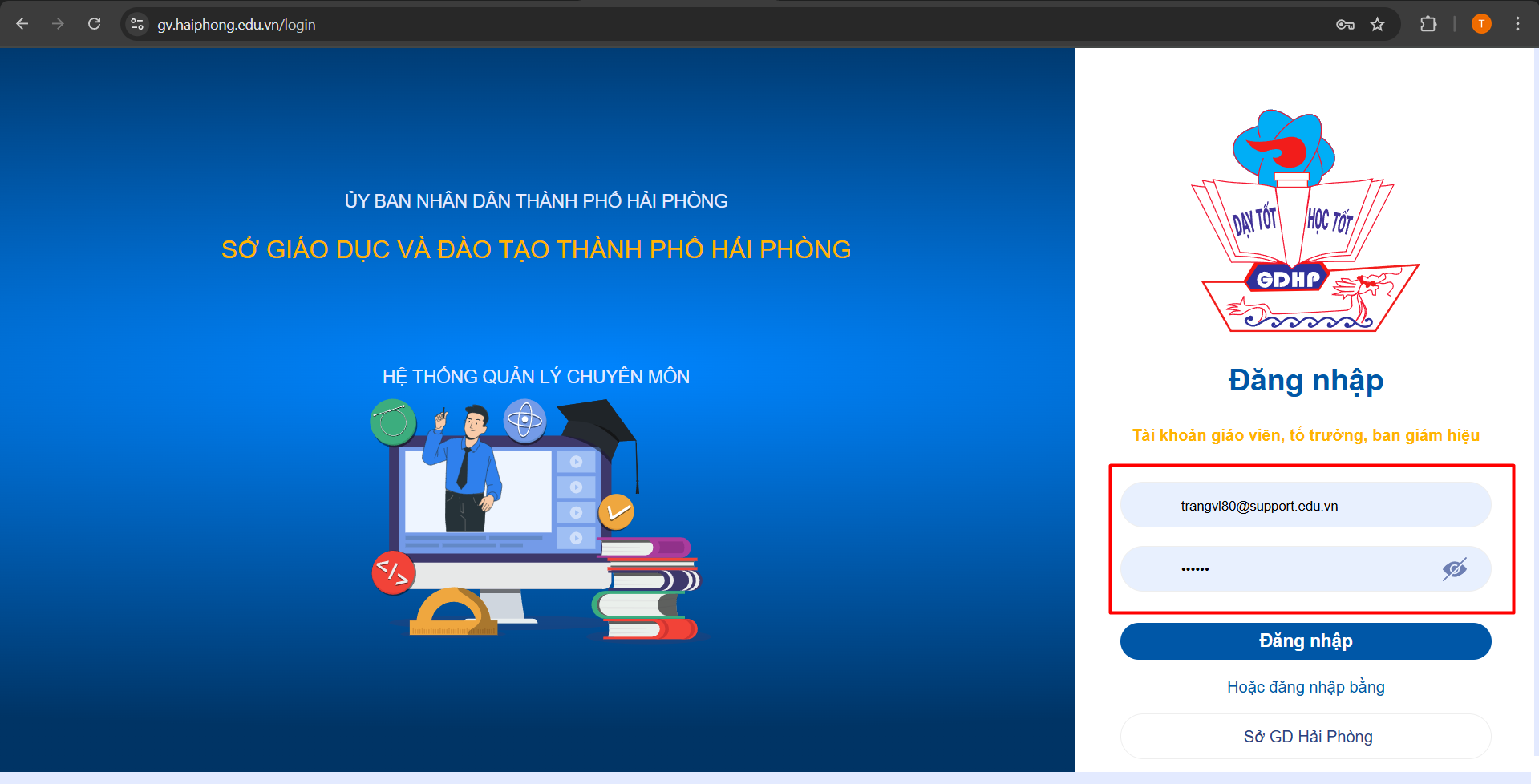 – Thầy/Cô sử dụng trình duyệt Google Chrome truy cập vào website “haiphong.edu.vn“.