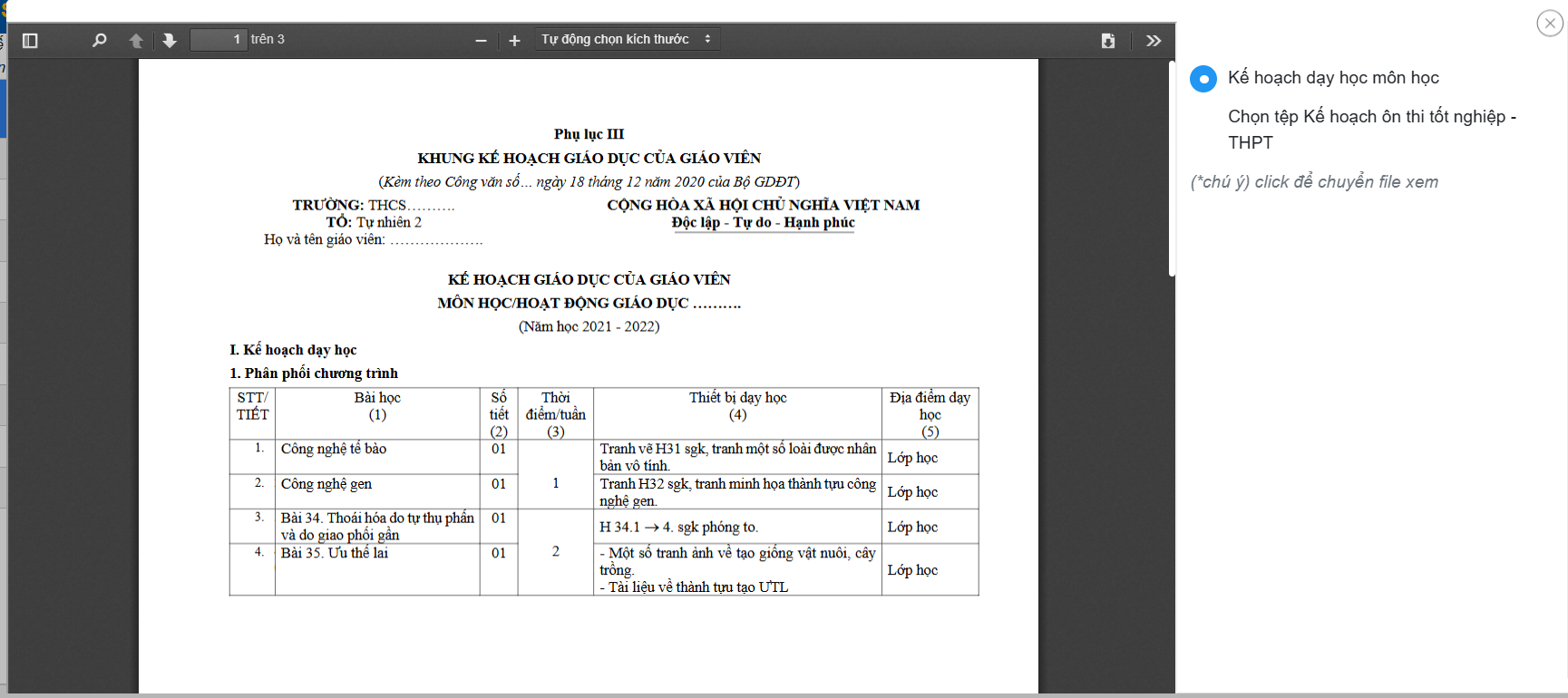 – Thầy/cô chọn biểu tượng ” Xem tệp kế hoạch bài dạy đính kèm” để xem KHGD của bộ môn