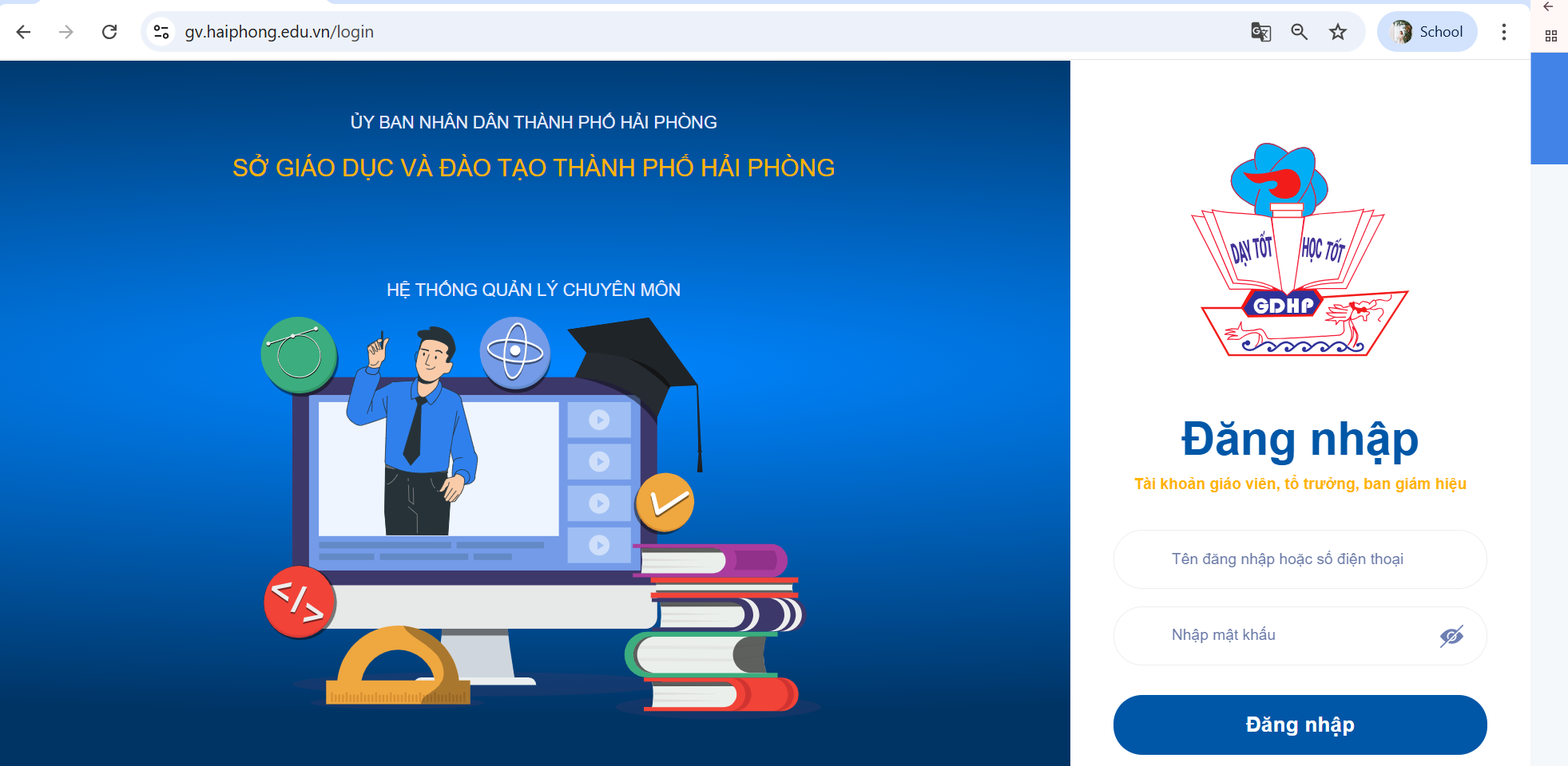 – Thầy/Cô sử dụng trình duyệt Google Chrome truy cập vào website “gv.haiphong.edu.vn’’.