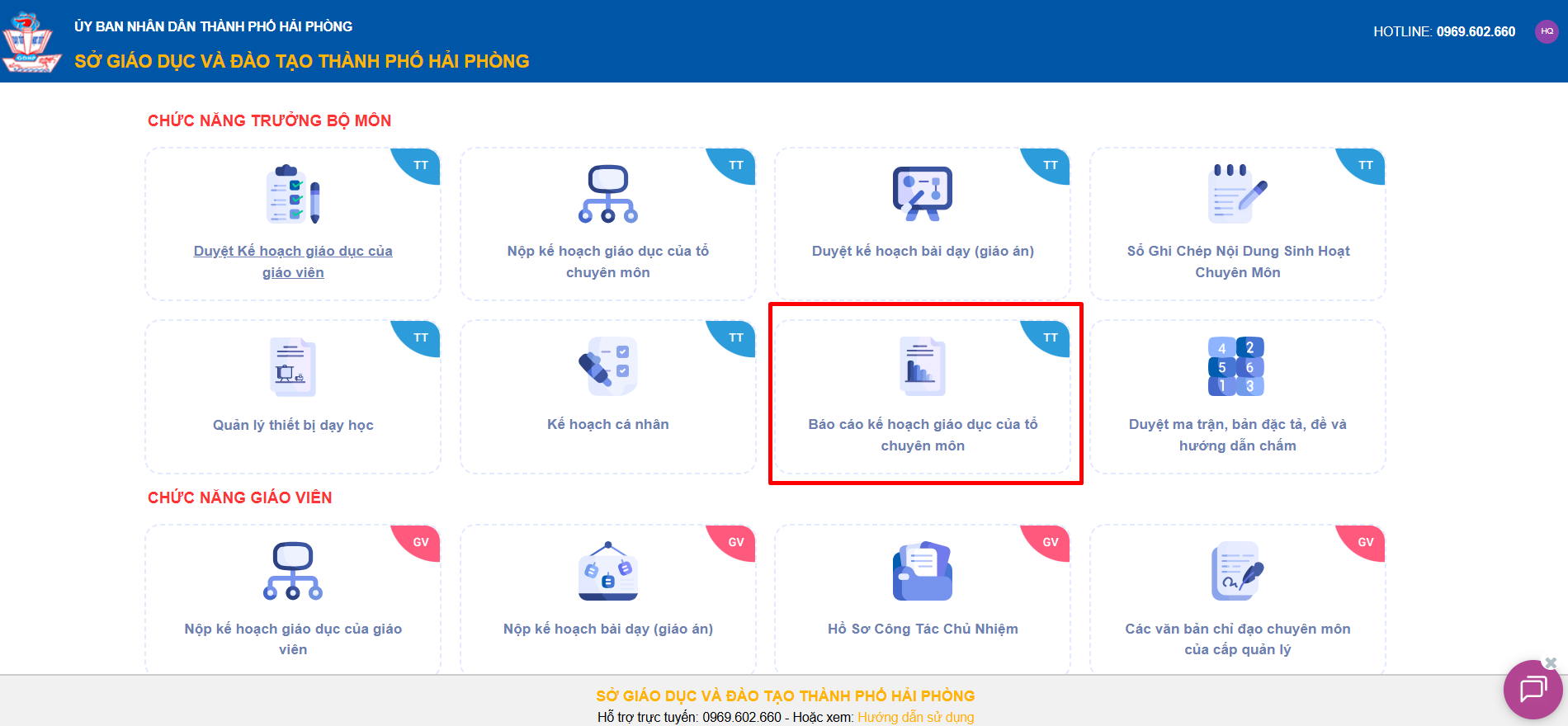 – Tại chức năng trưởng bộ môn, thầy/cô chọn “Báo cáo kế hoạch giáo dục của tổ chuyên môn”.